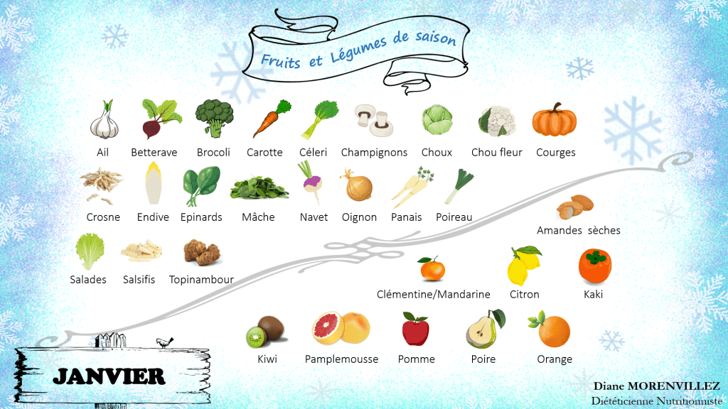 Nous voici en janvier, et quoi de mieux pour démarrer l’année que l’infographie des fruits et légumes du mois ? (Sinon une bonne part de galette des Rois peut-être 😋)