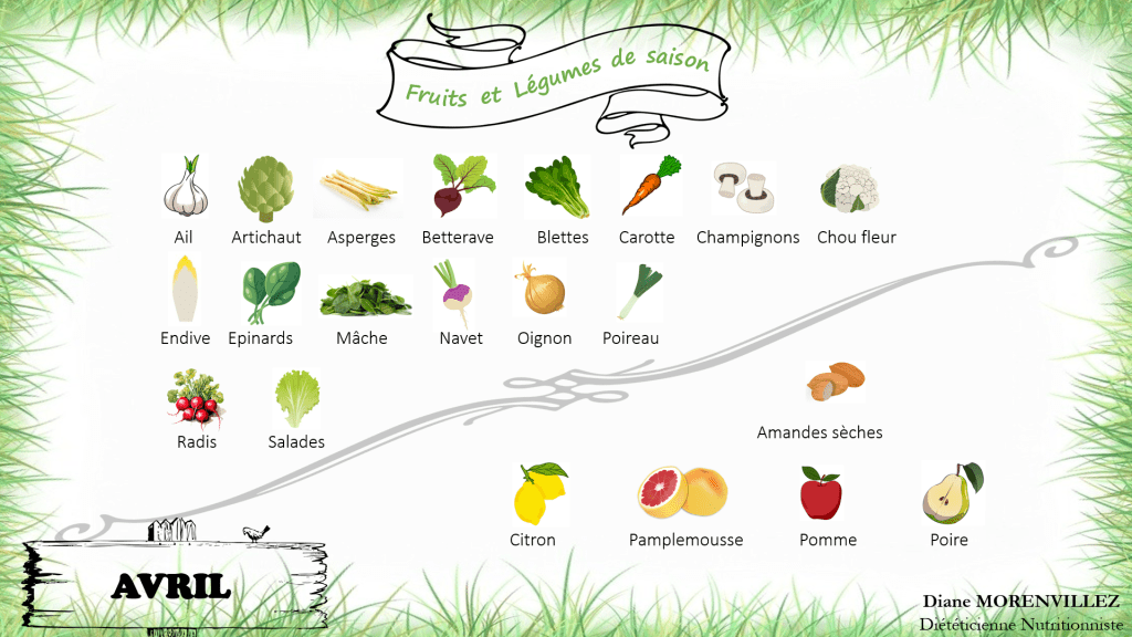Le printemps est officiellement là ! 🌸🐦🌱☀️ Quelques légumes qui nous ont bien manqué réapparaissent, comme les artichauts et les asperges. En revanche, il faudra encore attendre un peu pour que la liste des fruits s’allongent à nouveau doucement, avec l’arrivée des premiers fruits rouges le mois prochain. Encore un peu de patience !