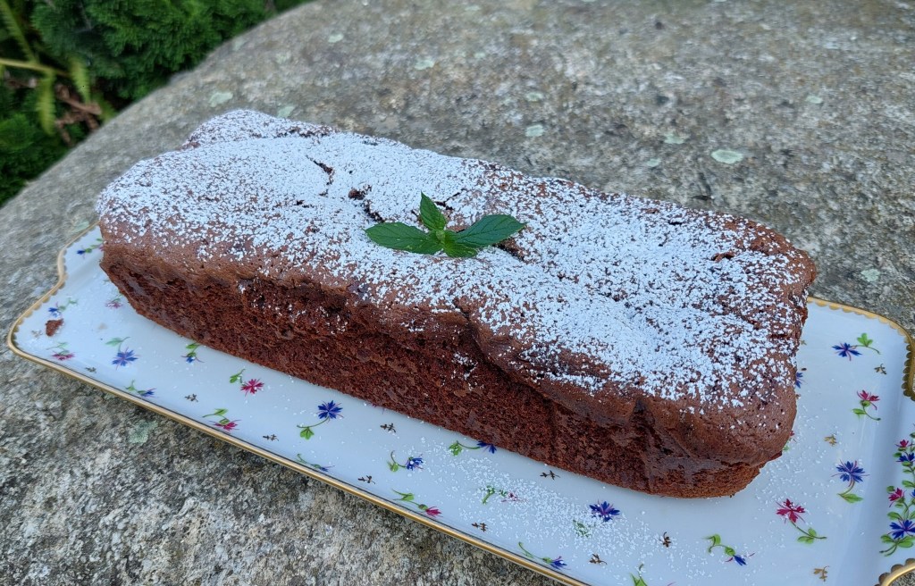 Verser dans un moule Ă cake beurrĂ© et farinĂ© (ou tapissĂ© de papier cuisson), et enfourner pour 25 min environ (surveiller la cuisson, et planter la lame d’un couteau pour la vĂ©rifier : elle doit ressortir humide mais sans trace de pĂąte pas cuite).