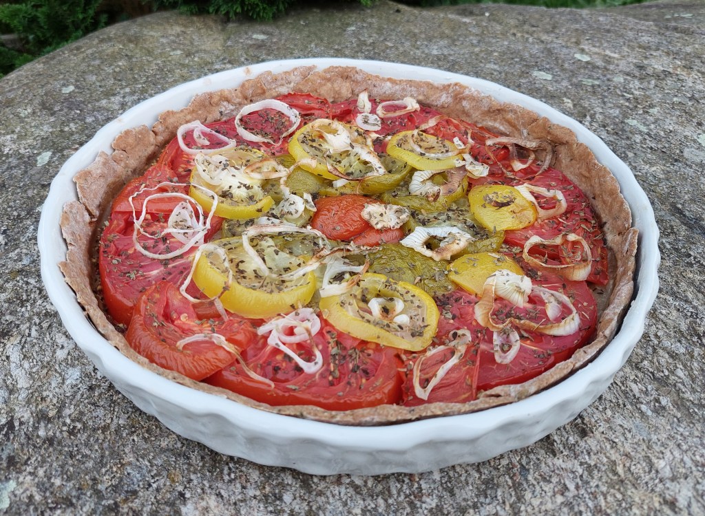 Le temps des vacances est passĂ©, les enfants sont retournĂ©s Ă l’Ă©cole, l’automne commence Ă pointer le bout de son nez… Mais c’est encore officiellement l’Ă©tĂ©, et nous avons encore quelques fruits et lĂ©gumes de cette belle saison Ă disposition, alors profitons en encore un peu avant de plonger dans les recettes chaudes et rĂ©confortantes des saisons froides qui approchent… Voici donc (encore) une recette de tarte… mais salĂ©e cette fois. C’est parti !
